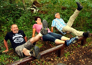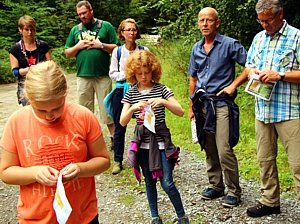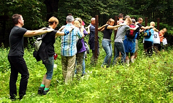 Der zweite Teil sollte auch lustig werden - wir alle mit Augen zu als Riesenschlange im Slalom durch die Parcoursstangen... ![]() ...zum Glück sind hier kaum andere Wanderer unterwegs... |