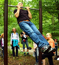 Station Nr.6 KLIMMZÜGE naja hier trennte sich dann wirklich die Spreu vom Weizen... während die Hälfte der Mitstreiter doch mindestens 3 Stück schaffte hing die andere Hälfte nur dran... |