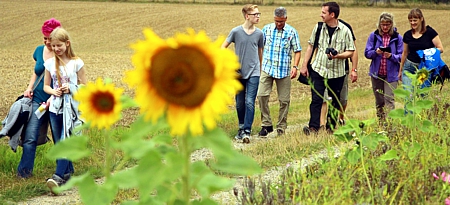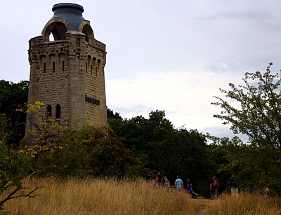 ![]() Wir kommen langsam raus aus dem Wald und im Gänsemarsch erklimmen wir den Hügel mit dem Bismarckturm... |
