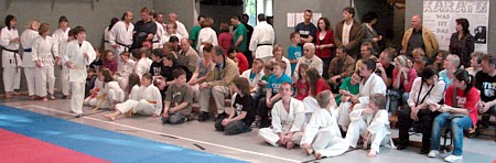 folgen der Einladung. Kata- und Kumite-Wettkämpfe werden durch die vielen Anwesenden nachgestellt und bewertet - Fazit: sehr interessant! |