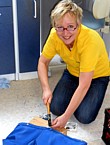 ...zusammen mit Sylvia werden nach der erfolgten Renovierung der Wände die Matten wieder verlegt. ![]() Der Vorhang hat allerdings dringend eine Wäsche und Generalüberholung nötig und: gesagt getan !!! |