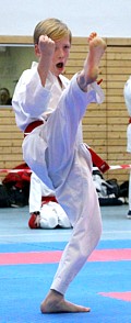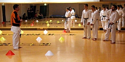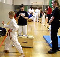 | Wie in den letzten Jahren begannen die Jüngsten mit ihrem Vergleich im Leistungstest. Im Hindernisparcours hieß es hier die beste Zeit zu erreichen. Parallel maßen sich die etwas Größeren in Kata und gerade die Anfänger konnten sich hier einmal untereinander messen. | ![]() |