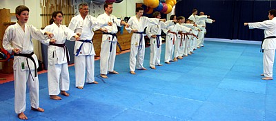 Nach 4 schweißtreibenden Einheiten stellten sich insgesamt 14 Karateka ihrer jeweiligen Dan-Prüfung... ![]() |