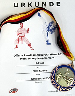 Mecklenburg-Vorpommern Anthony und Maik nutzten die Möglichkeit und nahmen an der offenen LM in Stralsund teil. Während Maik sich den 3.Platz in der Kategorie Kata Ü30/Ü40 sichern konnte, hatte Anthony leider keine Chance sich in seinen Startklassen durchzusetzen, zumal die hier verlangte Kumite-Form ihm auch unbekannt war... |