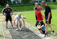Die bekannten DKV-Trainer, wie F. Nöpel, E. Karamitsos, K. Bitsch, T. Nitschmann, J. Kestner und G. Weichert um nur einige zu nennen, ließen sich gern über die Schultern schauen und so konnten Karin, Janet, Tibor und Thomas ein paar interessante Einheiten erleben. |