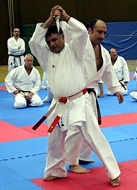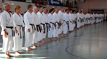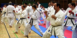 ![]() Wieder folgten fast 100 Karateka aus weiten Teilen des Bundesgebietes der Einladung zum nunmehr schon 9. Lehrgang für Kumite und realistische SV. In diesem Jahr wurde die Trainerriege um Akay Özdemir 7.Dan und Kasin Keles 8.Dan durch den welterfahrenen Trainer der Türkischen Nationalmannschaft Ersoy Cirlar 7.Dan erweitert und verstärkt. |