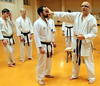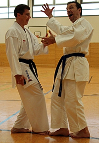 kamen alle Anwesenden voll auf ihre Kosten. ...während Kasim und Charly mit den Jugendlichen und Erwachsenen Teilnehmern Messerabwehrtechniken übten, kümmerte sich Willi Richmann um die jüngeren Karateka... |