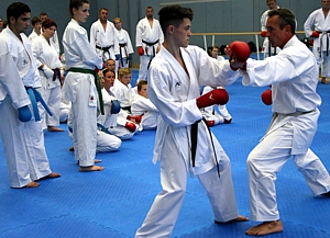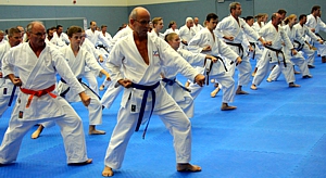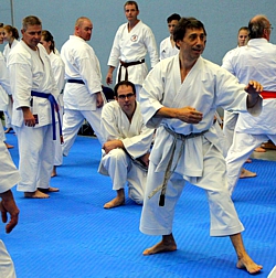 | Eine Hälfte landet bei BT Efthimios Karamitsos und lässt sich hier neue Impulse für das Training der Kata Heian Shodan, Heian Nidan und Heian Sandan geben. |